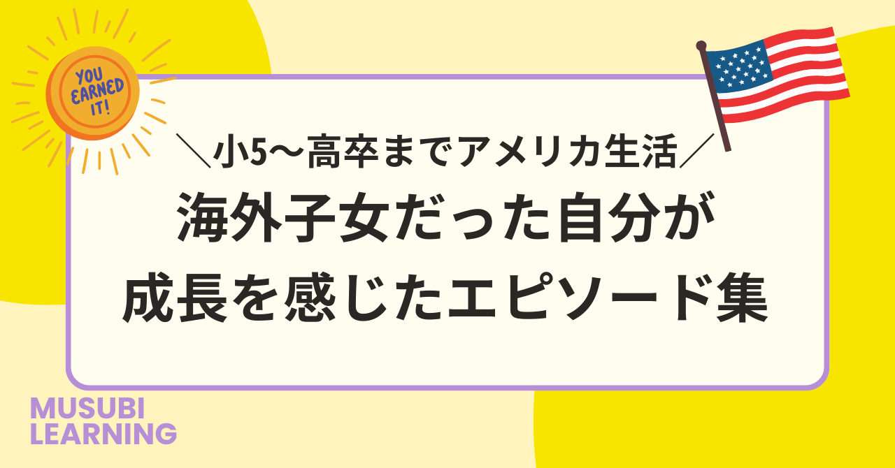 現在はアメリカで頑張る海外子女の皆さんを支える立場ですが、以前は私自身が父親の仕事の都合でアメリカへ引っ越し、アメリカの現地校に通う海外子女でした。