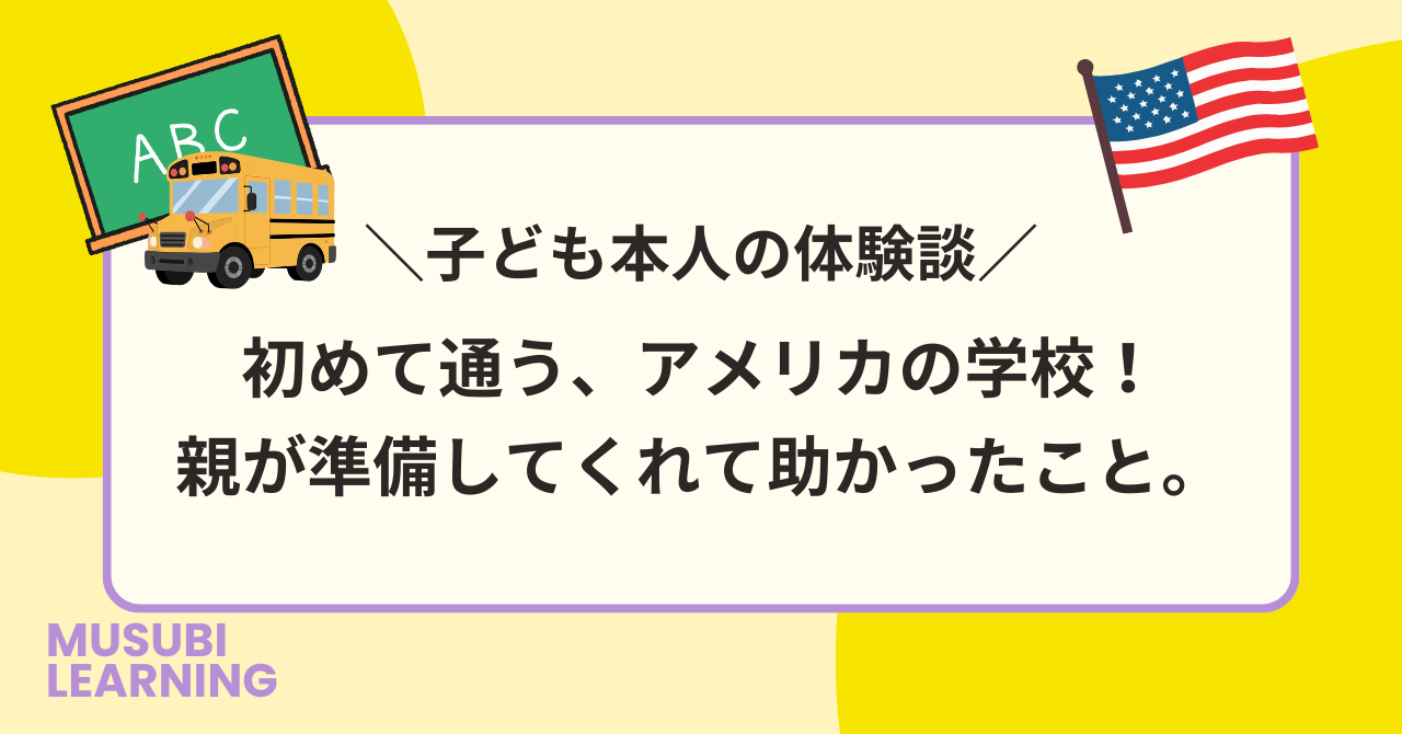 初めて通うアメリカの現地校、親子ともに緊張しますよね。今回は私自身が小学校5年生で初めて現地校に通うことになった当時を振り返り、子ども目線から「親がこんなことをしてくれて助かったなあ」と覚えていることを考察も交えてご紹介します。